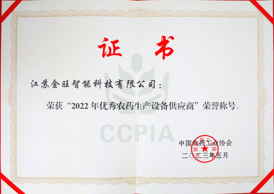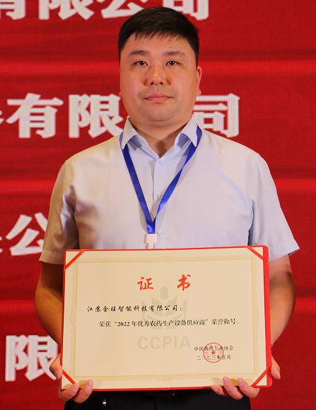 金旺智能憑借高效穩(wěn)定的產(chǎn)品性能,得到了行業(yè)內(nèi)客戶一致好評,收獲由中國農(nóng)藥工業(yè)協(xié)會頒發(fā)的“2022年優(yōu)秀農(nóng)藥設(shè)備供應(yīng)商”榮譽稱號。