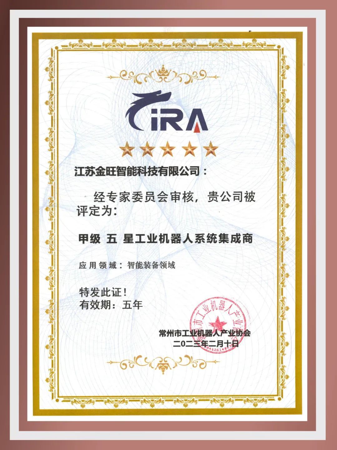 近日,常州市工業(yè)機器人產(chǎn)業(yè)協(xié)會頒布工業(yè)機器人集成商,金旺智能獲甲級五星榮譽,以實力彰顯智能裝備領(lǐng)域領(lǐng)跑者風(fēng)范。