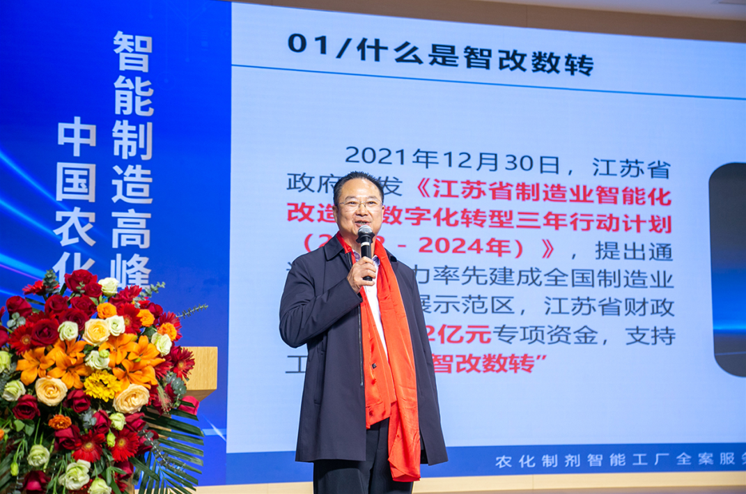 金旺智能董事長房國榮會上詳盡介紹“智能加工、智能包裝、智能倉儲、智能運維”四大核心產(chǎn)品,著重強調(diào):智改數(shù)轉(zhuǎn)的重要性,切實增強推動“智改數(shù)轉(zhuǎn)”的必要性,金旺智能將繼續(xù)以成為世界級農(nóng)化制劑智能工廠全案服務(wù)商的發(fā)展愿景,為全球農(nóng)化制劑行業(yè)注入新活力。
