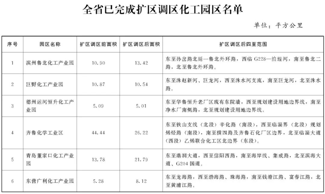 2022年10月,山東省政府辦公廳印發(fā)了《山東省化工園區(qū)擴(kuò)區(qū)管理辦法(試行)》,已試行兩年多時(shí)間。今年1月7日,山東省公布了最新修訂的《山東省化工園區(qū)擴(kuò)區(qū)調(diào)區(qū)管理辦法》。新辦法將擴(kuò)區(qū)條件由12條增加至16條,在規(guī)劃、產(chǎn)業(yè)、安全、環(huán)保、用水等方面加嚴(yán)了標(biāo)準(zhǔn)要求,并對(duì)綜合評(píng)價(jià)、主導(dǎo)產(chǎn)業(yè)、畝均效益、土地利用等指標(biāo)數(shù)據(jù)進(jìn)行了適度提升。同時(shí),新辦法新增了調(diào)區(qū)章節(jié),將調(diào)區(qū)和擴(kuò)區(qū)進(jìn)行了區(qū)分,對(duì)只進(jìn)行局部?jī)?yōu)化調(diào)整未增加土地面積的調(diào)區(qū)情形,單設(shè)了標(biāo)準(zhǔn)條件,對(duì)部分經(jīng)濟(jì)指標(biāo)不再作硬性規(guī)定。