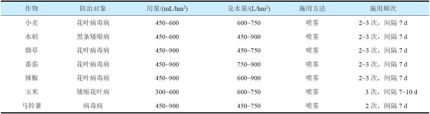 表4 0.06%甾烯醇ME在中國(guó)登記的使用方法