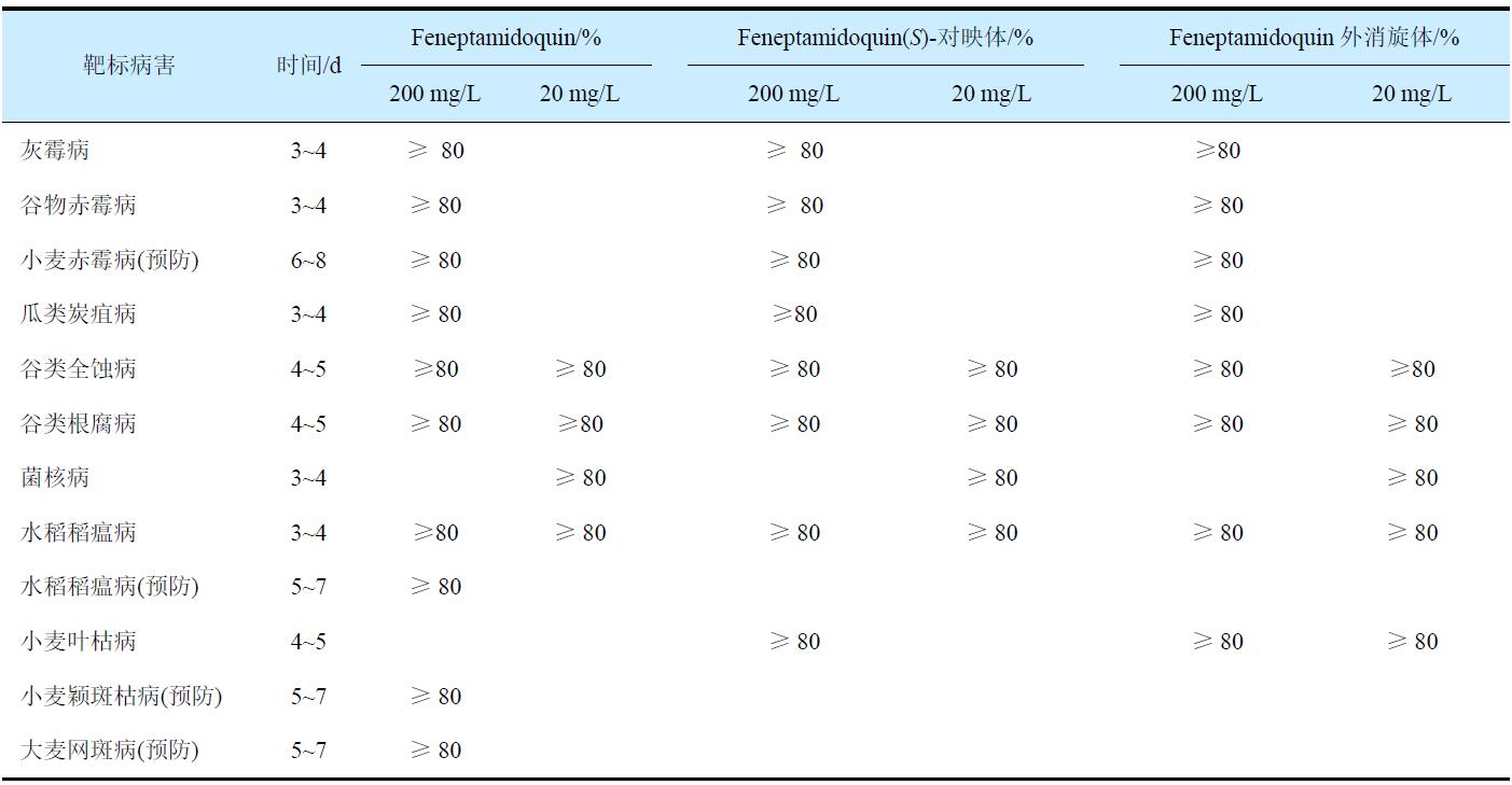 表3 Feneptamidoquin及其(S)-對(duì)映體和外消旋體的殺菌活性