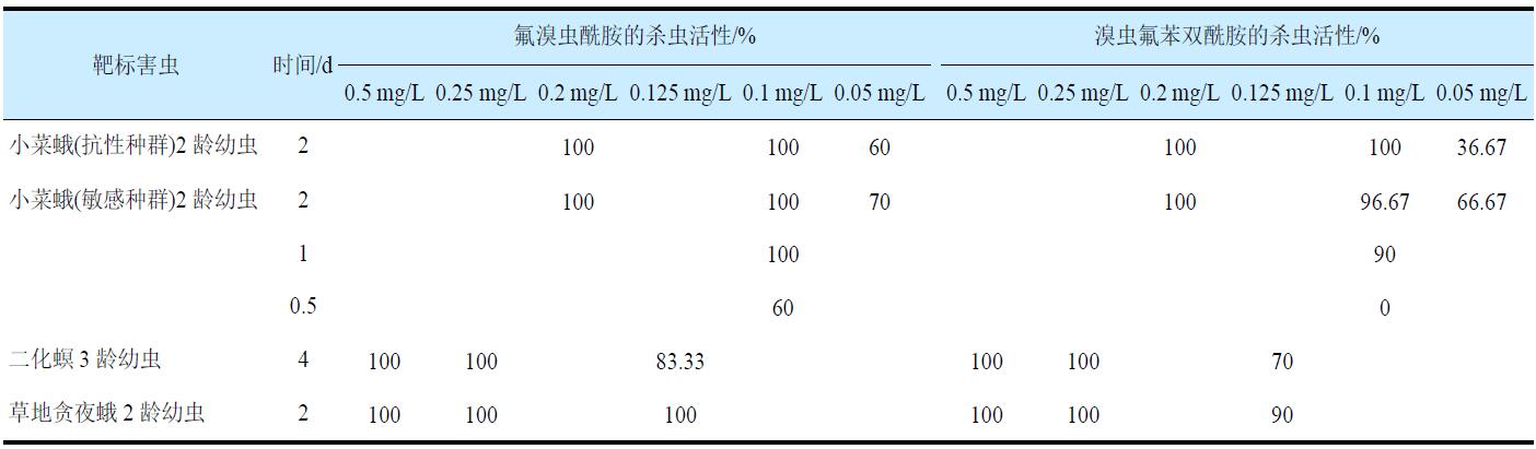 表2 氟溴蟲(chóng)酰胺與溴蟲(chóng)氟苯雙酰胺的殺蟲(chóng)活性比較